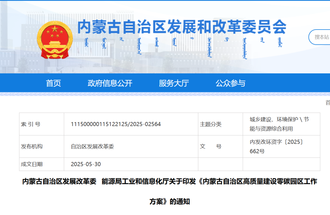内蒙古自治区发改委、能源局、工信厅关于印发《自治区高质量建设零碳园区工作方案》的通知