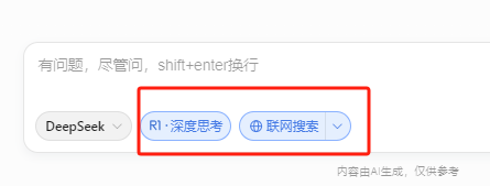 出现这种区别是因为你要点击一下“联网搜索”这个按钮,同时别忘了把“深度思考”也点亮。
