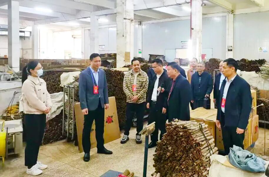 蓝永光一行深入罗定源发科技发展有限公司、罗定粤桂实业有限公司等地调研,详细了解肉桂产业种植、肉桂产品研发深加工系列产品的生产与销售等情况。在座谈会上,提案人介绍提案提出的背景和希望解决的主要问题,主办单位和会办单位分别汇报办理情况,与会人员围绕南药产业发展积极建言献策。